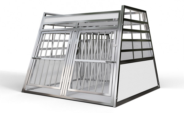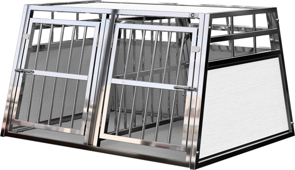 - Cage double : permet de transporter deux chiens séparément grâce à une cloison centrale. C’est le choix privilégié des éducateurs, dresseurs ou propriétaires de plusieurs animaux.
