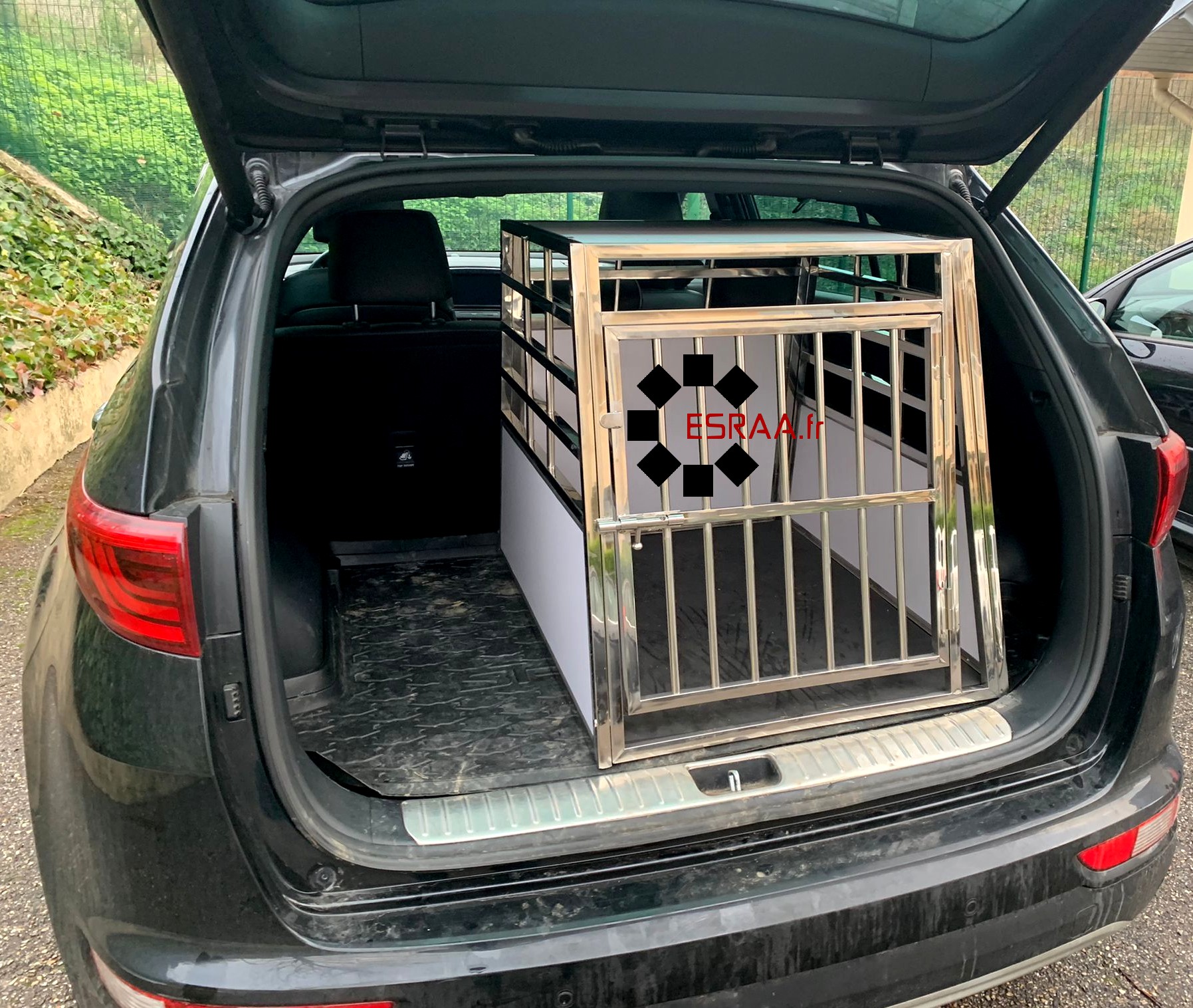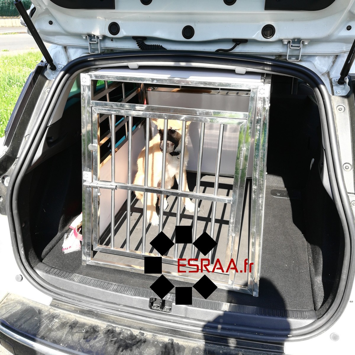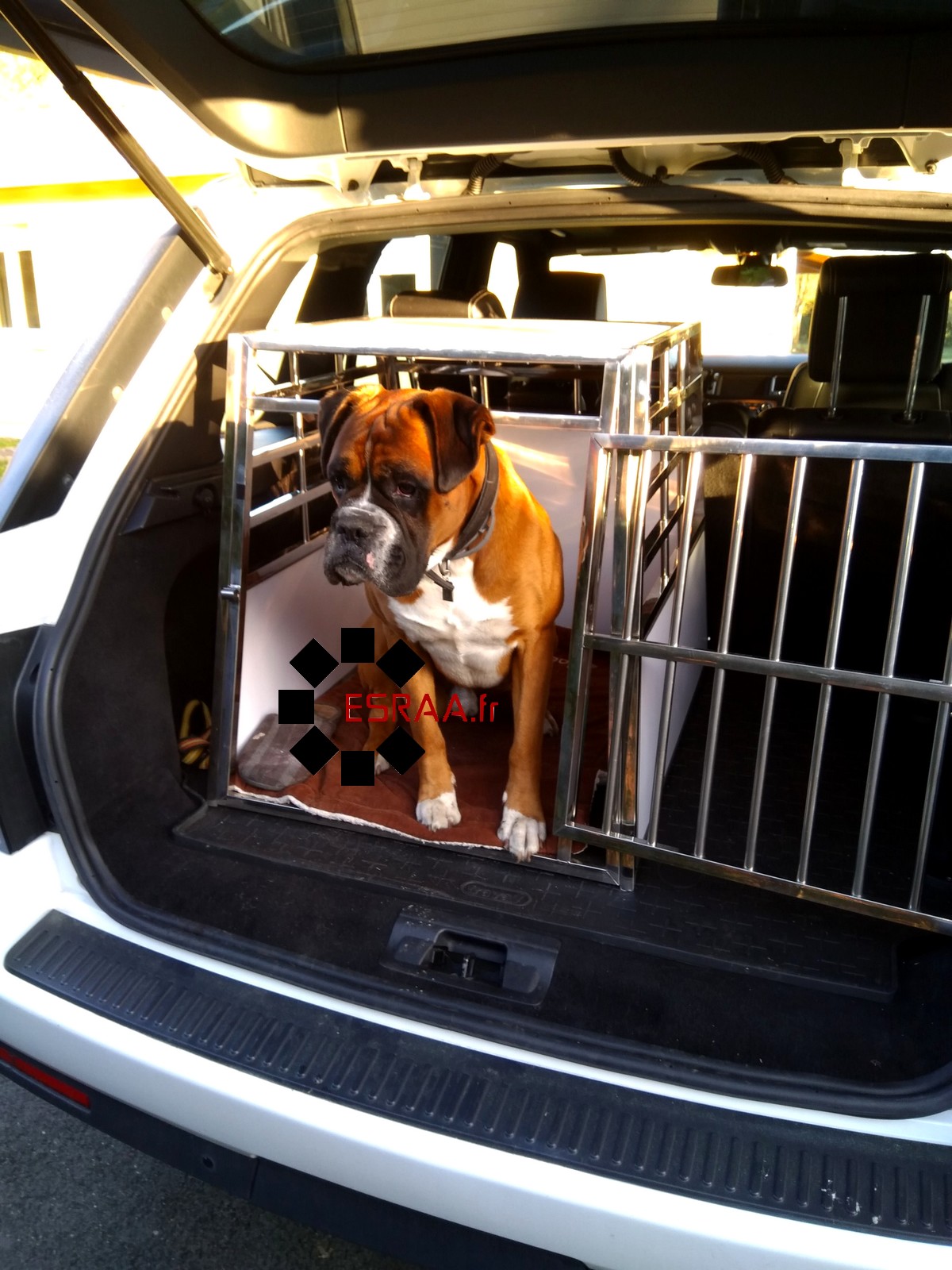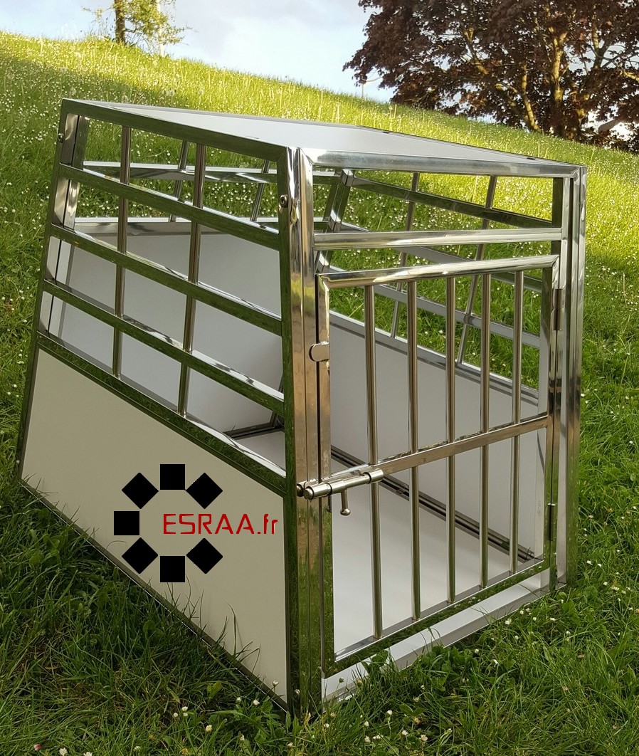 Cage robuste en acier inoxydable avec deux faces inclinées pour une meilleure adaptation dans le coffre de votre véhicule.