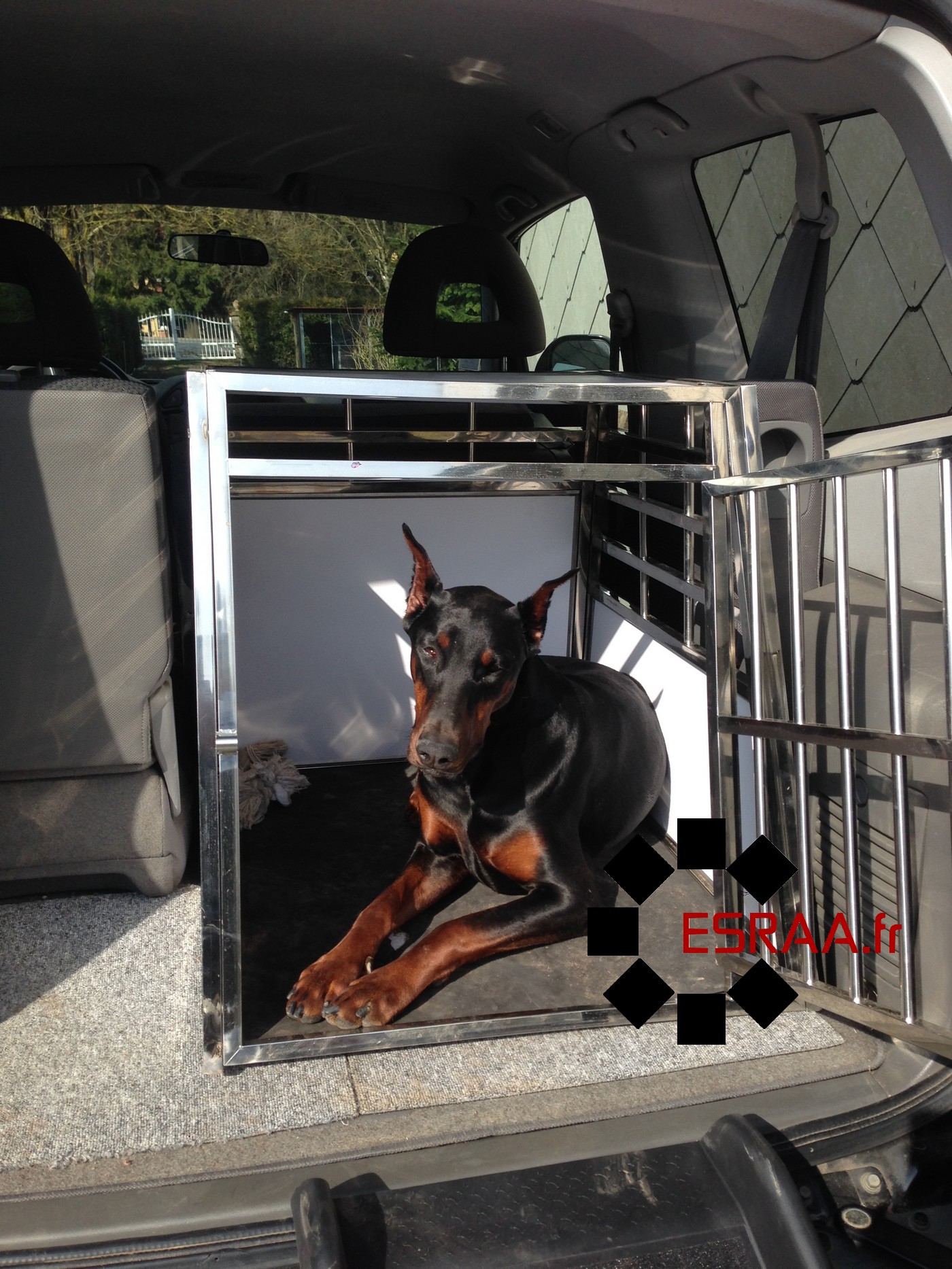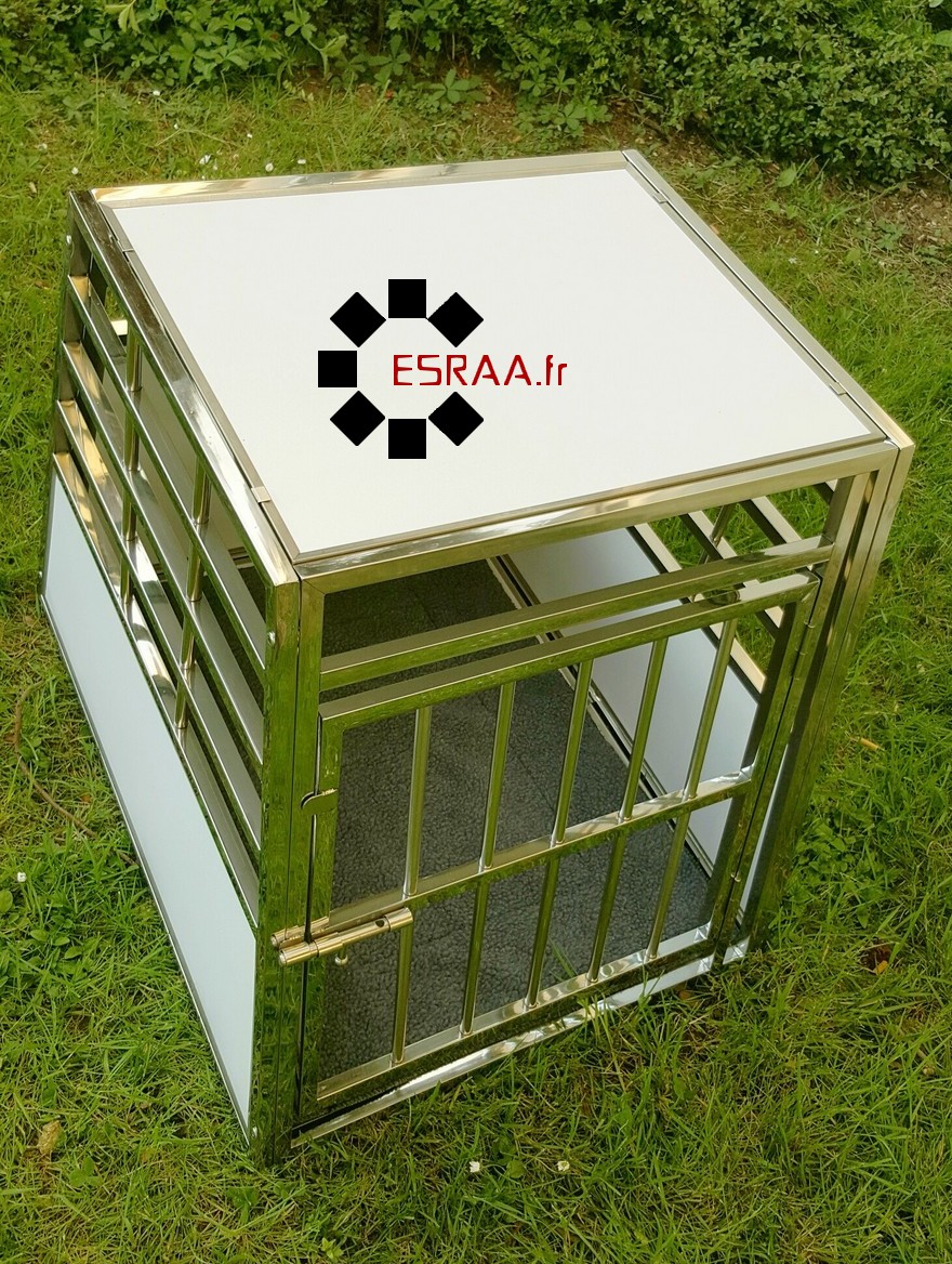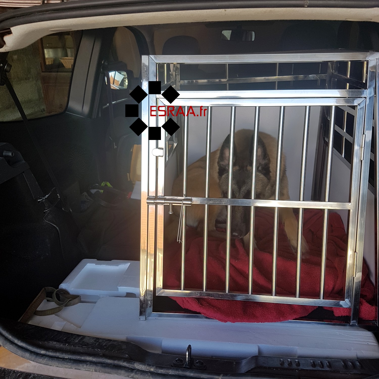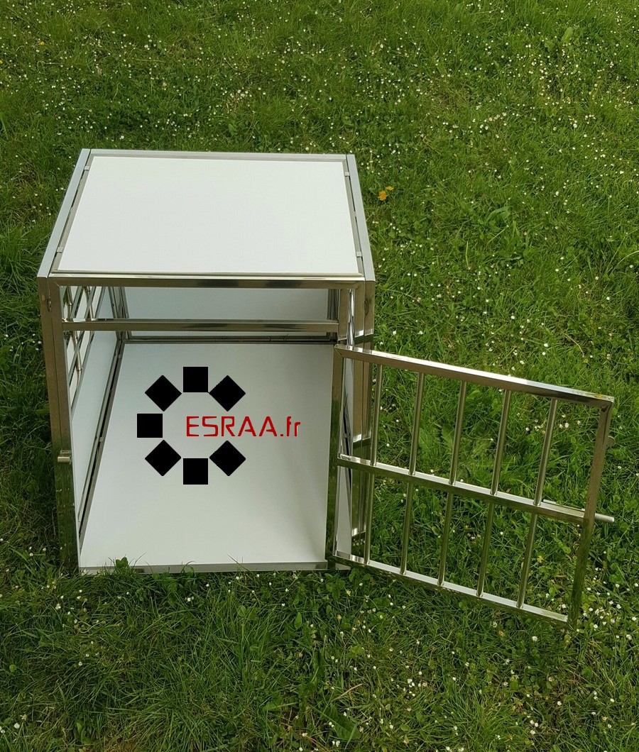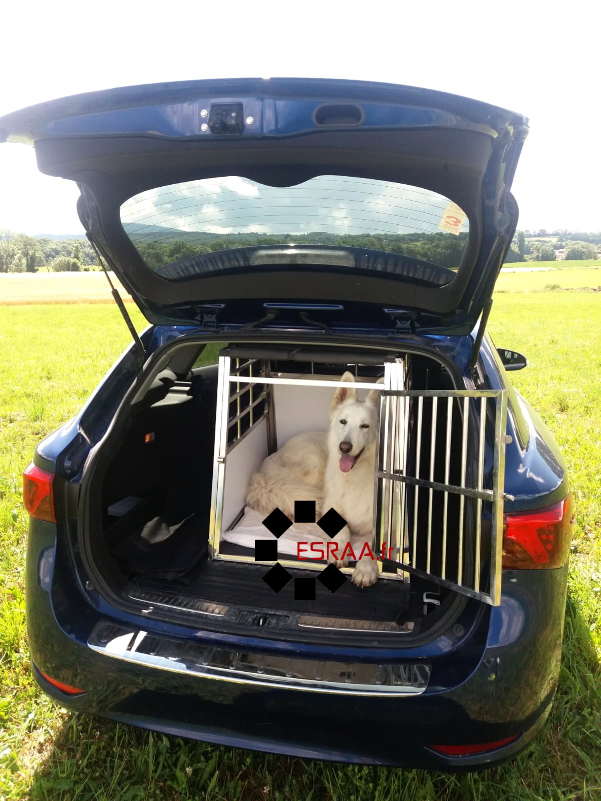 Cage robuste en acier inoxydable avec deux faces inclinées pour une meilleure adaptation dans le coffre de votre véhicule.