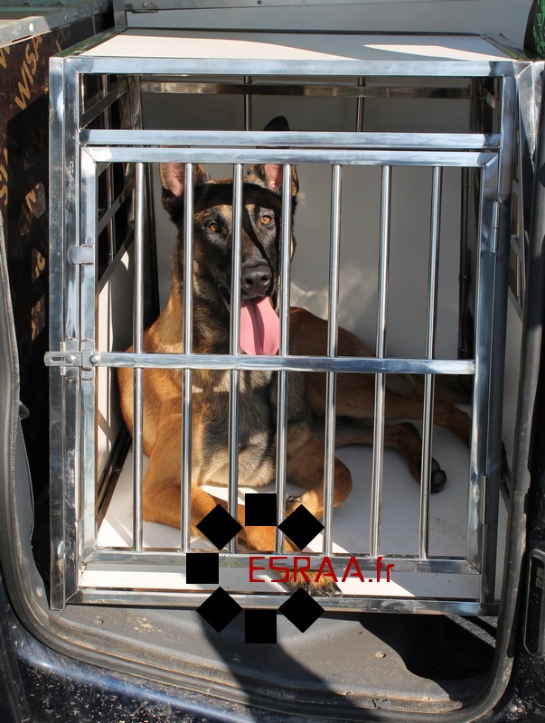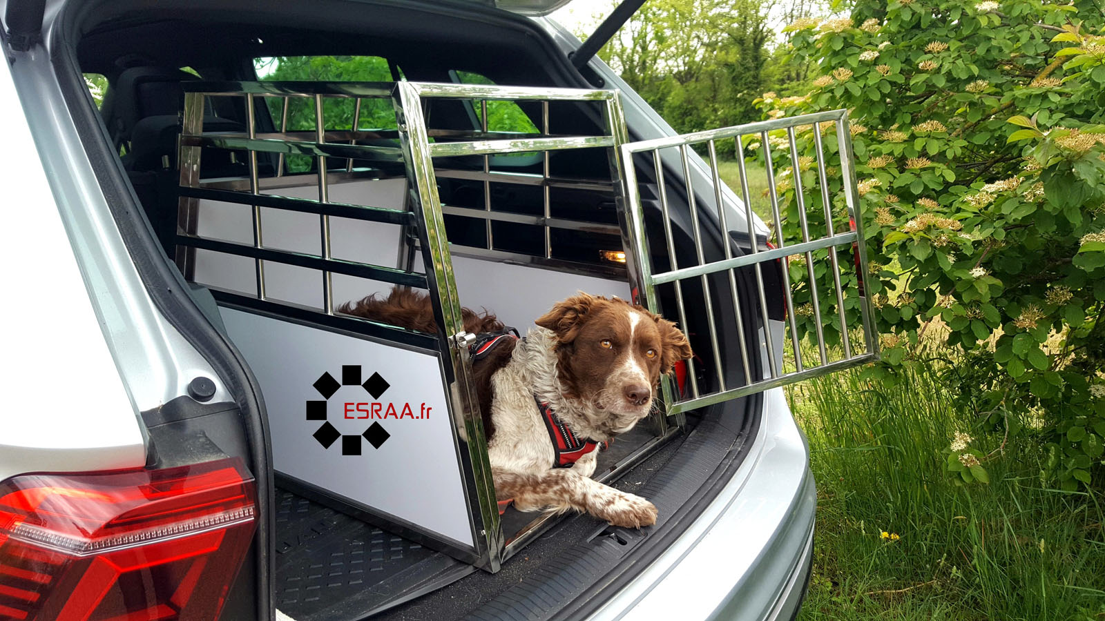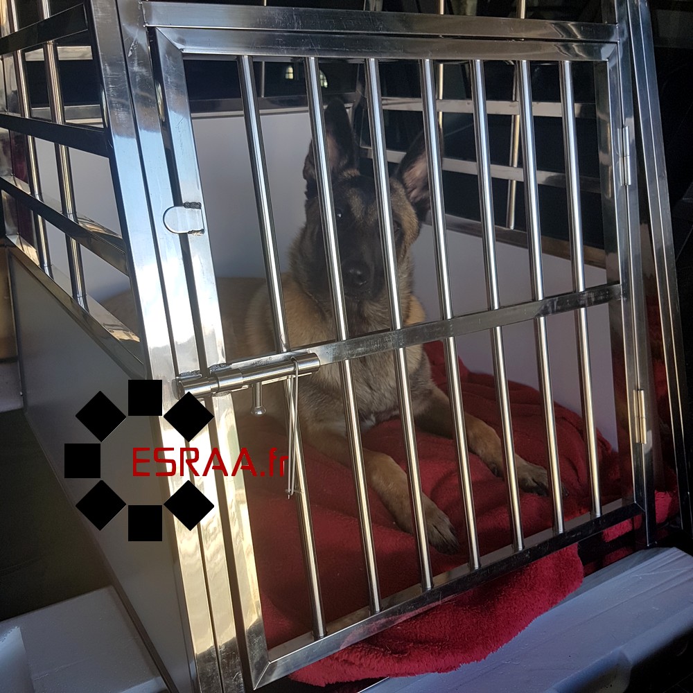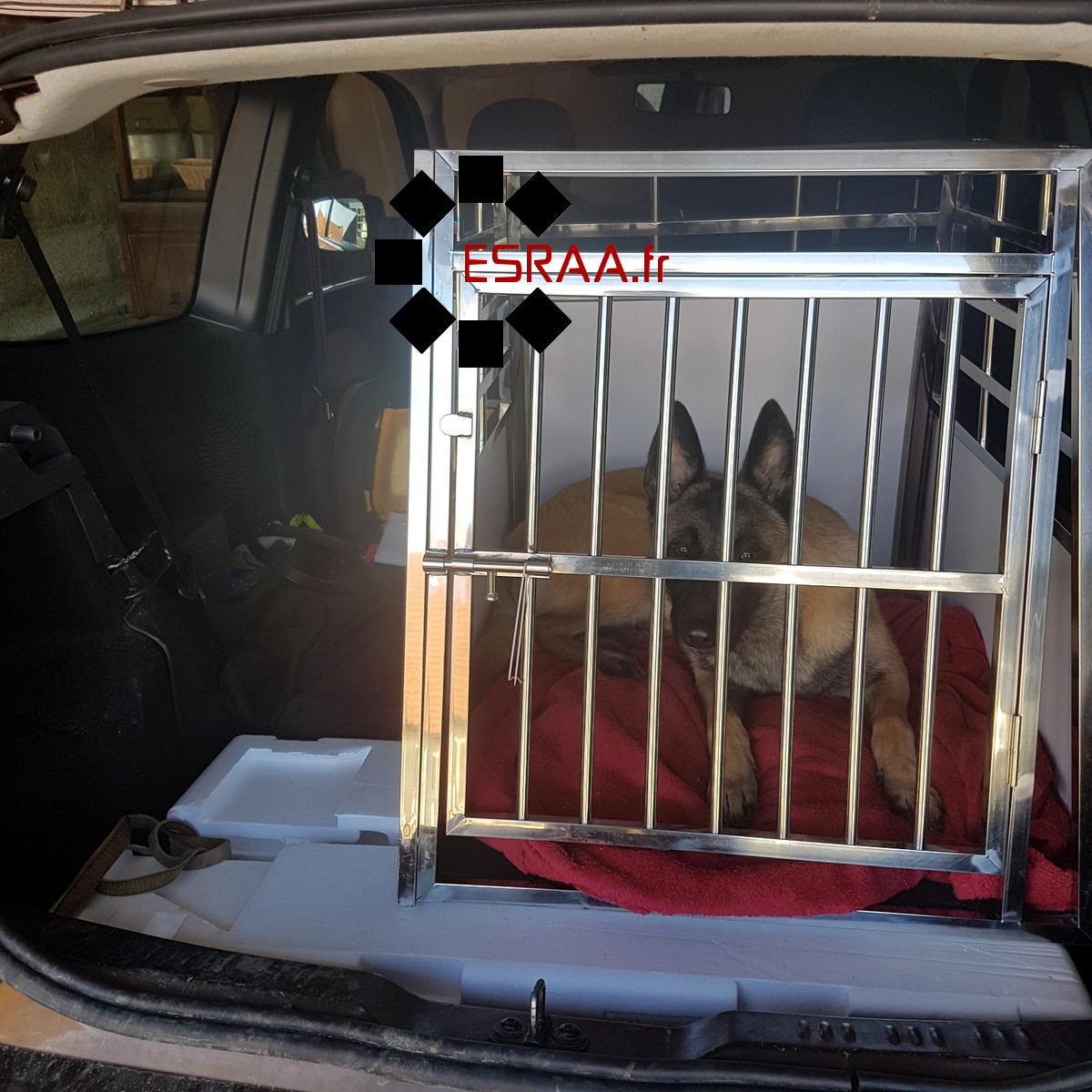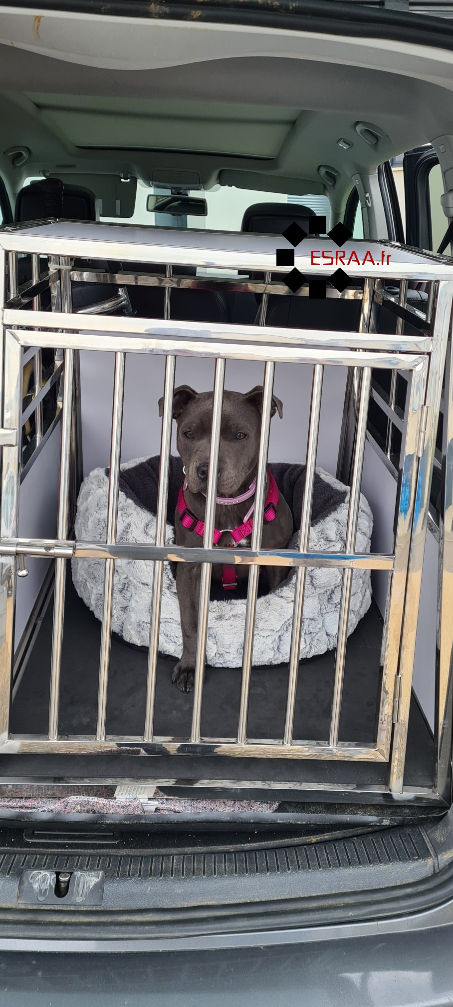 Cage robuste en acier inoxydable avec deux faces inclinées pour une meilleure adaptation dans le coffre de votre véhicule.