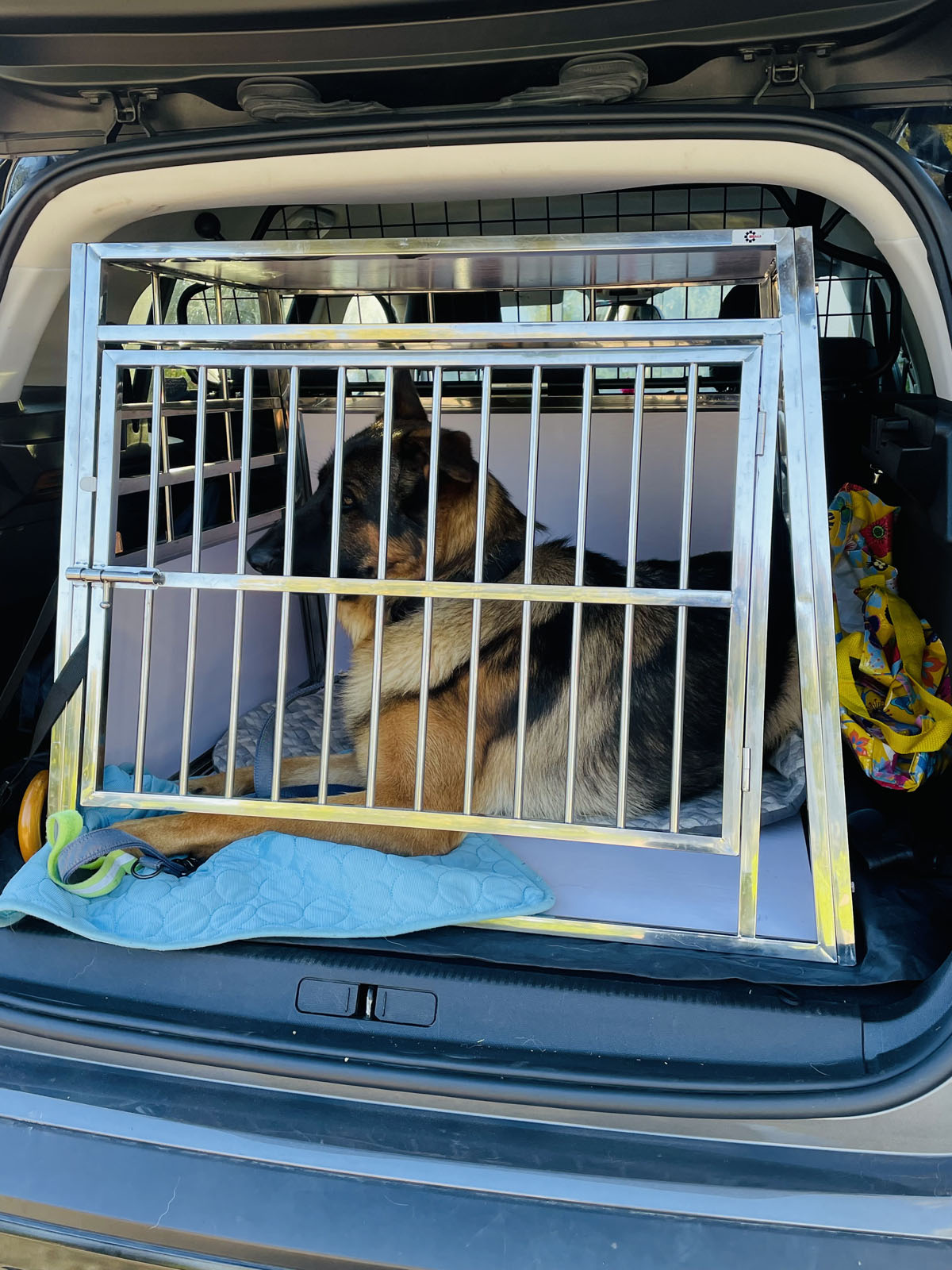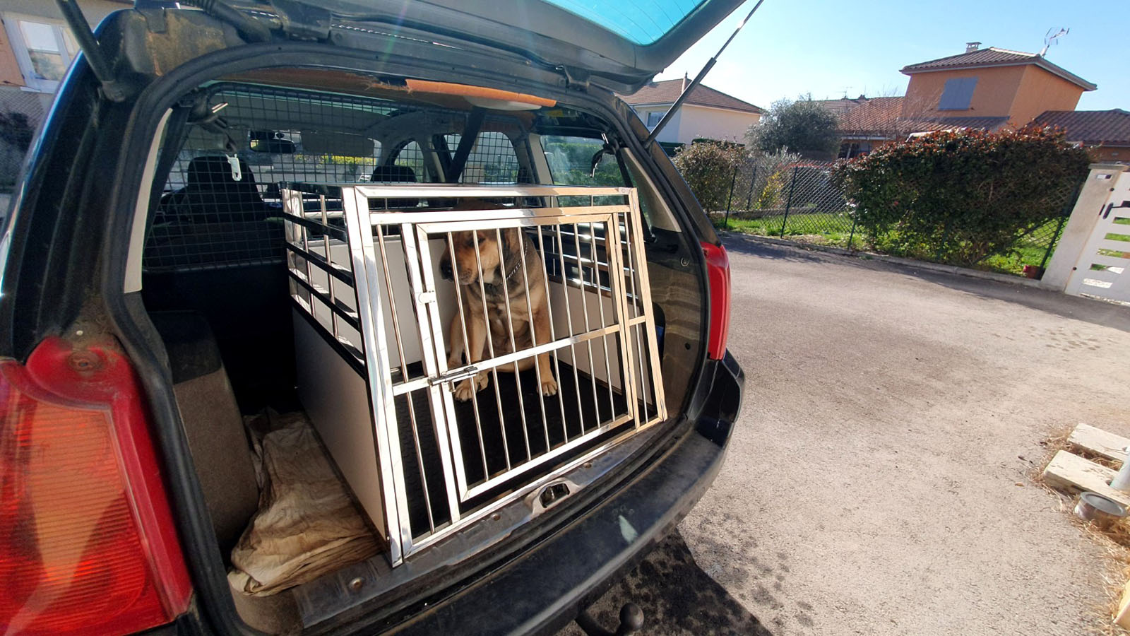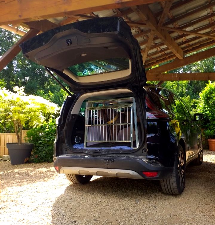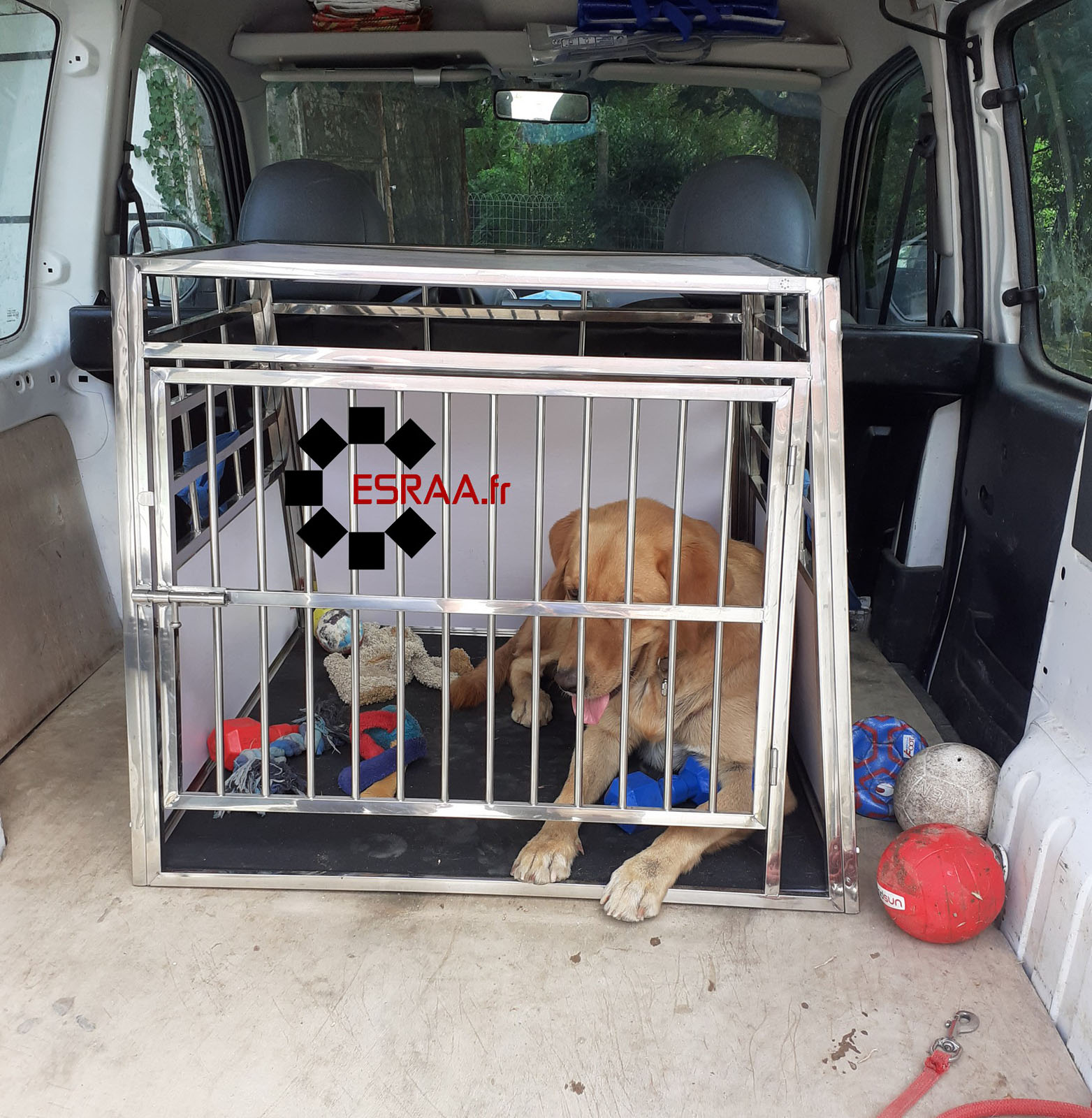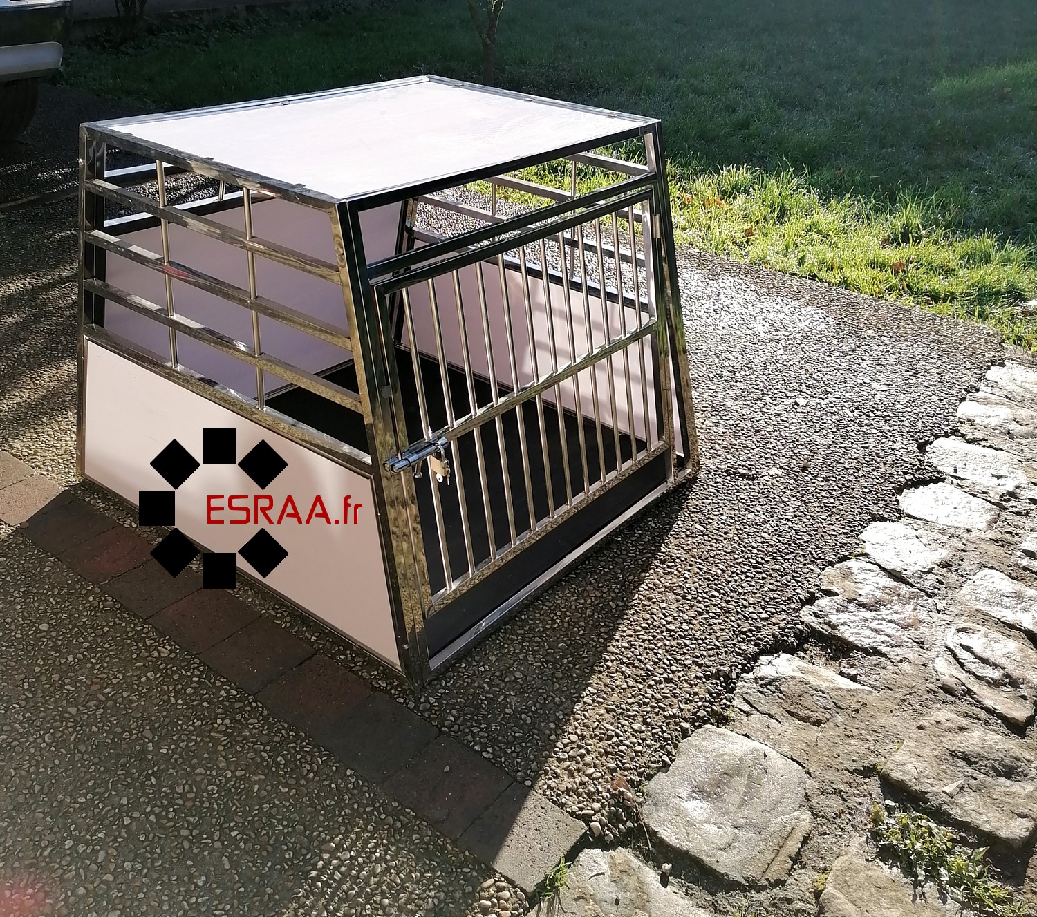Cage robuste en acier inoxydable avec deux faces inclinées pour une meilleure adaptation dans le coffre de votre véhicule.